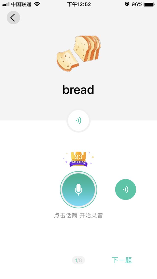 掌上泡泡APP与课堂学习同步,系统将自动推送与孩子能力相匹配的口语作业,完成训练后系统自动打分,发音标准的单词显示为绿色,不标准的单词显示为红色,孩子可以通过提示不断纠正错误发音。